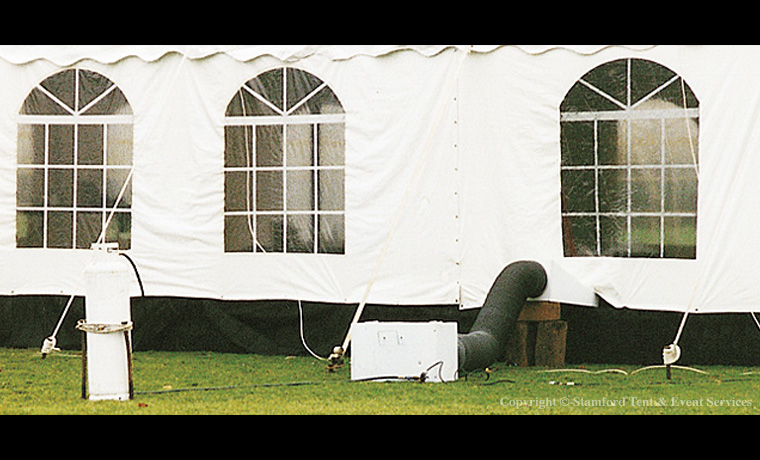 We have several different climate control options available to ensure your guests are comfortable in one of our rental tents at any time of year, regardless of the season. Don't let the weather affect your plans. Stamford Tent & Event Services provides heating, air conditioning, fans and dehumidifying equipment to precisely control internal temperature when it’s warm, cold, humid or raining outside your rental tent. We offer natural gas and propane heating and cooling with totally enclosed flame and electronics for maximum safety. These units are equipped with remote thermostats to control temperature inside your tent rental with ease.